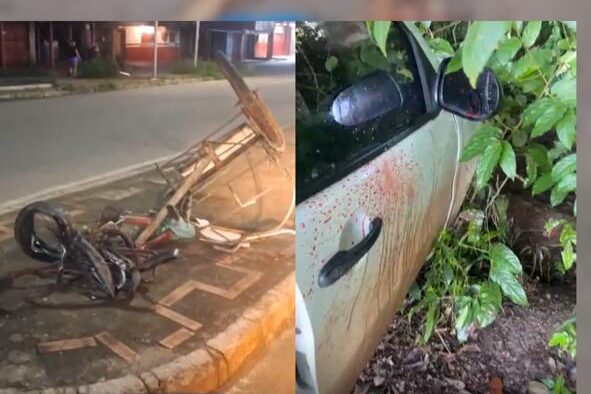 Um grave acidente de trânsito registrado na noite de ontem, nas proximidades da Drogaria Reis, resultou na morte de um senhor. A vítima foi brutalmente atropelada por um veículo modelo Palio branco enquanto seguia pela via com uma bicicleta, que ficou completamente destruída com o impacto.